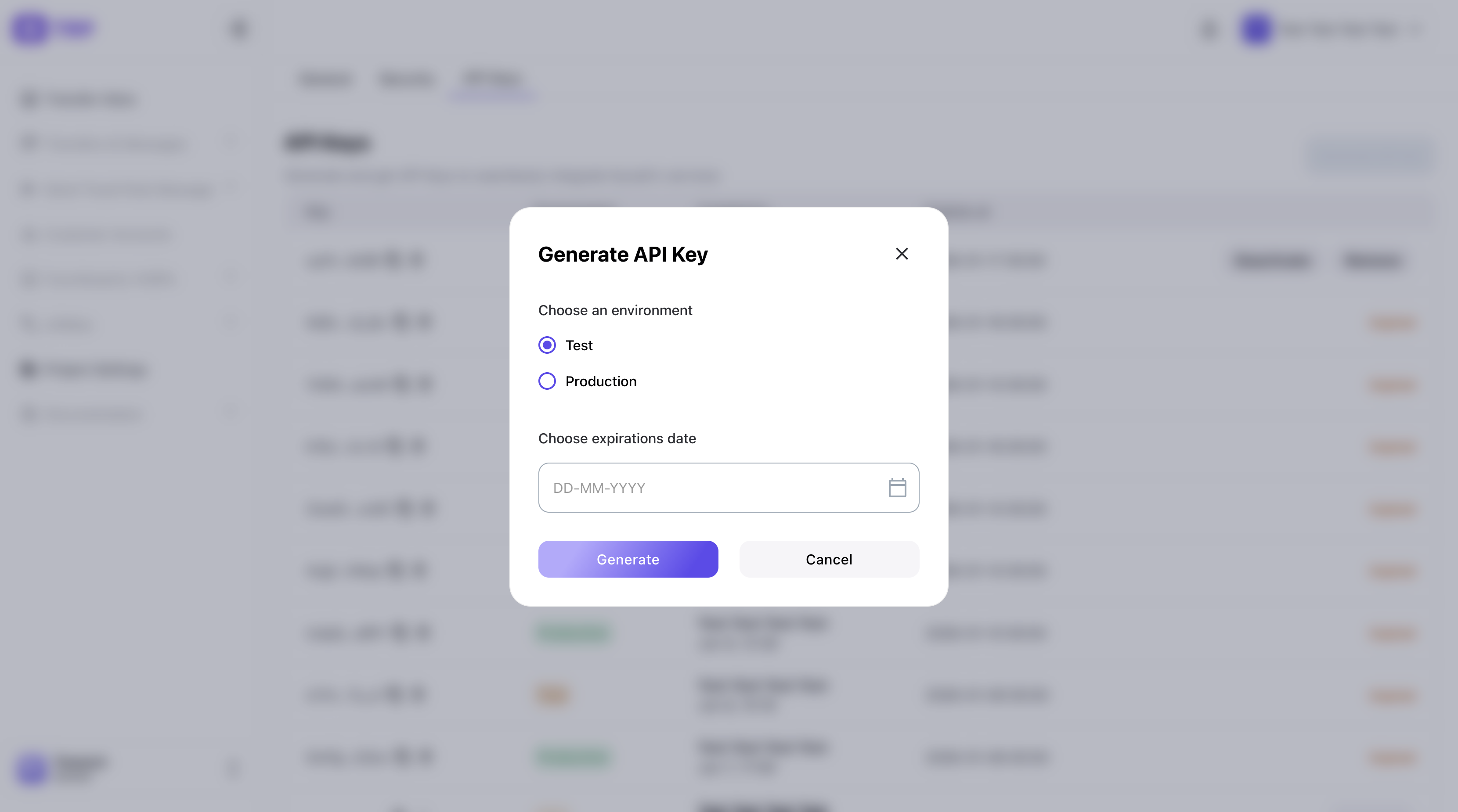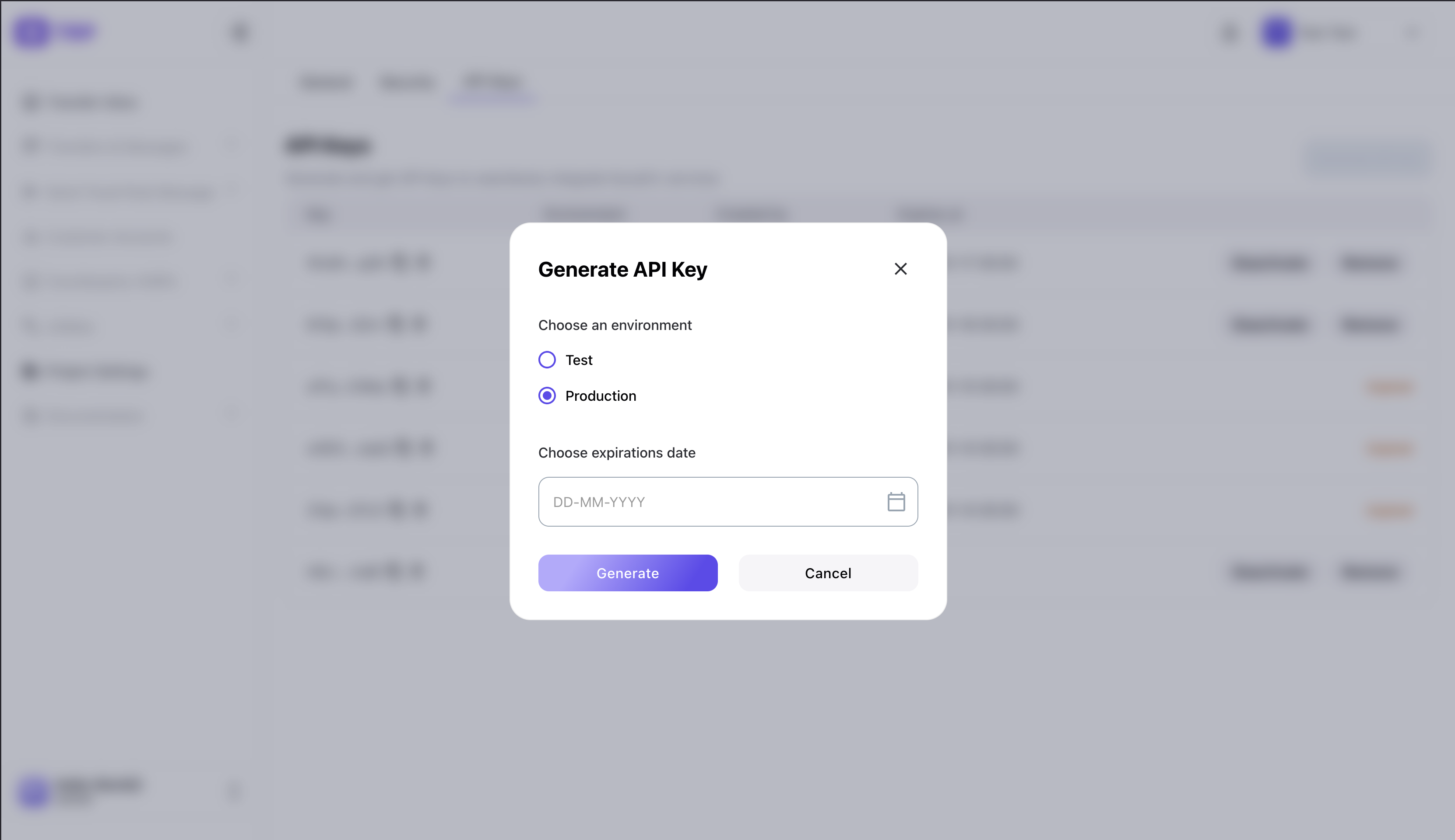 Step 2. Generate a Production API Key. Create an API key for the production environment with an expiration date set in the future.